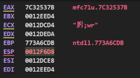 可以看到栈已经被破坏了,反汇编MSVCR71!wcscpy: