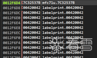 0012ef28 00420042 00420042 00420042 00420042 LabelPrint+0x20042