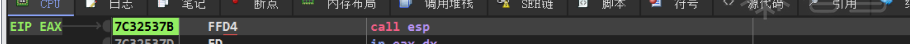 接下里一路执行直到0012F64E地址处的ret指令。执行ret指令跟进7C32537B地址发现这是一个call esp,而此时的esp是0012F6D8。现在我们明白原来预先在0012F6D4这个地址里放入0x0032007B不是随便找的地址。我们既拿到了0x0032007B又把堆栈提高到了0012F6D4,之后的操作也是只是对堆栈进行小修改。