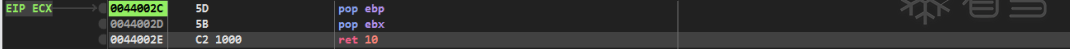 此时堆栈情况如下,可以看到执行两次pop后ret到0x12EED4: