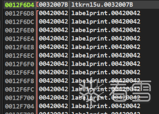 0012ef48 00420042 00420042 00420042 00420042 LabelPrint+0x20042