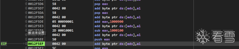 之后执行pop eax是为了将0012F6D4里的0x0032007B取出给eax。