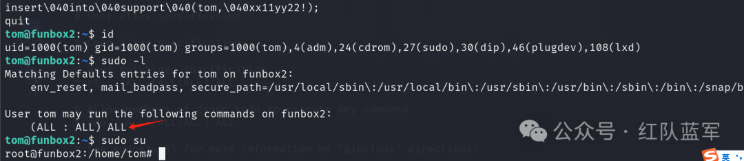 这里定义了tom用户能够使用sudo命令不需要输入密码就能得到root的权限