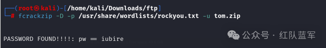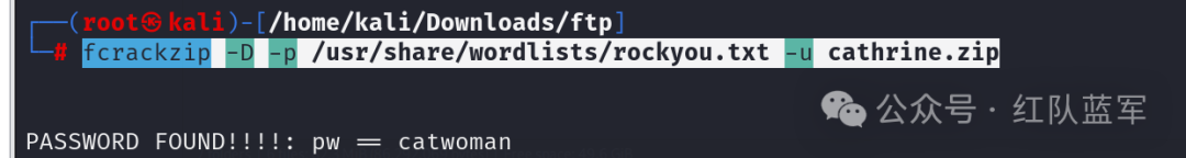 这里要使用工具 fcrackzip,破解密码