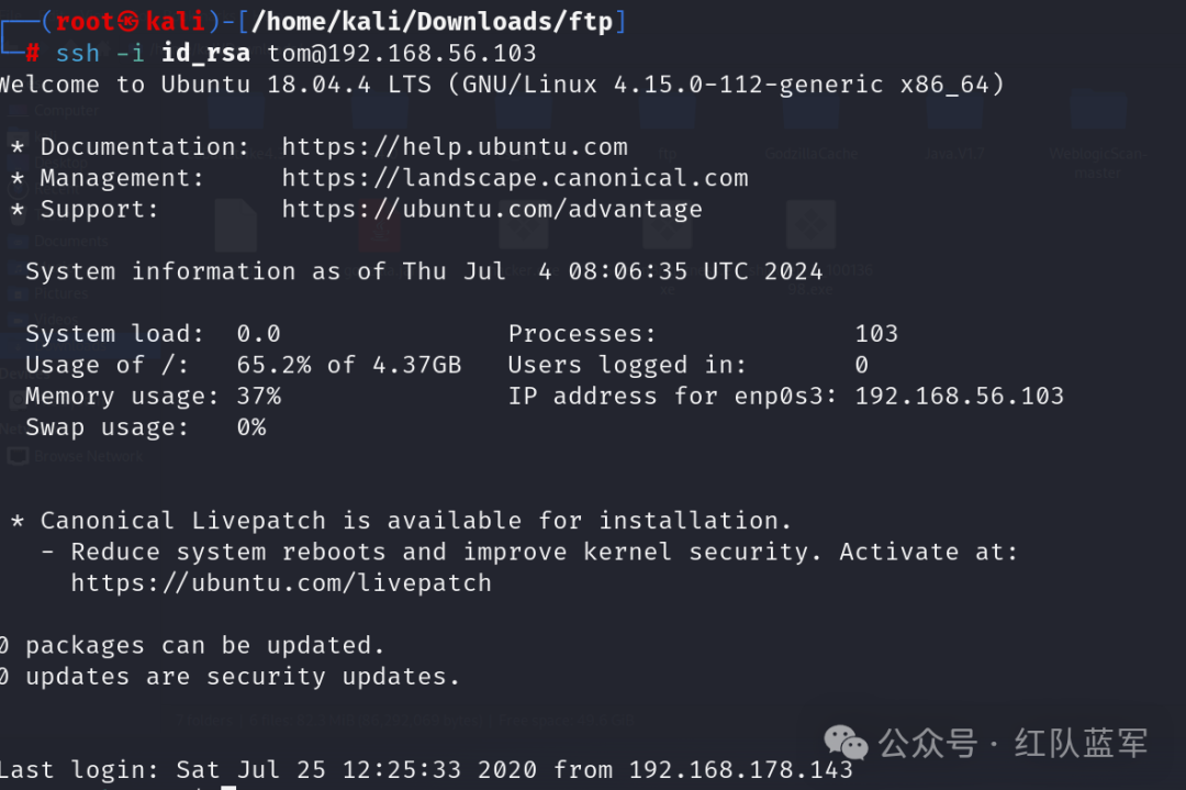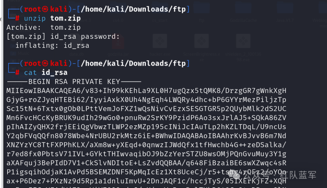 基于得到的密码,对tom.zip 进行解压,得到rsa私有密钥,这个时候通过id_rsa登录ssh