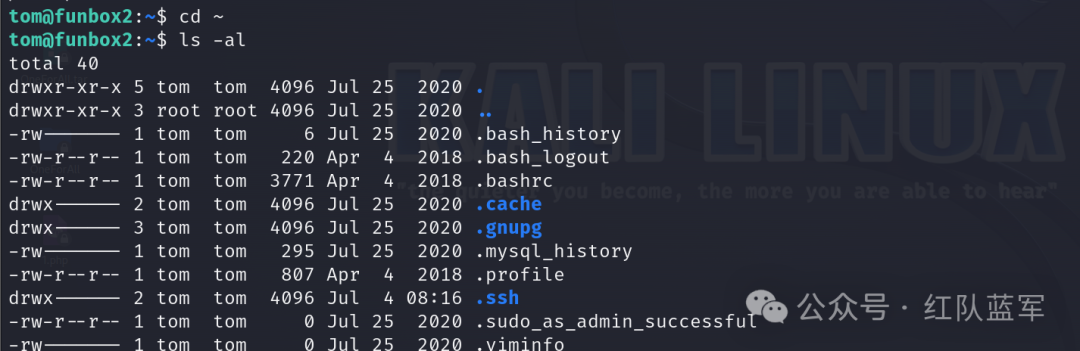 切换到家目录下,查看隐藏文件