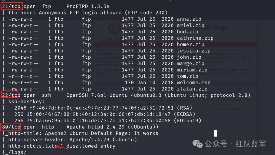 在扫描端口时提示 Anonymous FTP login allowed,即允许Anonymous作为用户名以及使用空密码进行登录