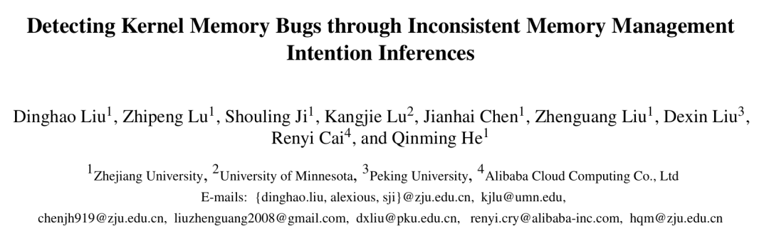 它们彷佛是在研究某种“代码心理学”,也就是考虑程序员怎么犯错误,并通过这种思路去捕捉代码中的问题,今天我们要为大家介绍的USENIX Security 2024论文Detecting Kernel Memory Bugs through Inconsistent Memory Management Intention Inferences就是这类工作的又一典型代表: