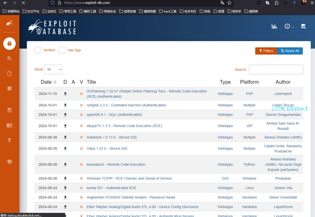 1、exploit-db:一个专注于公开漏洞利用的在线平台