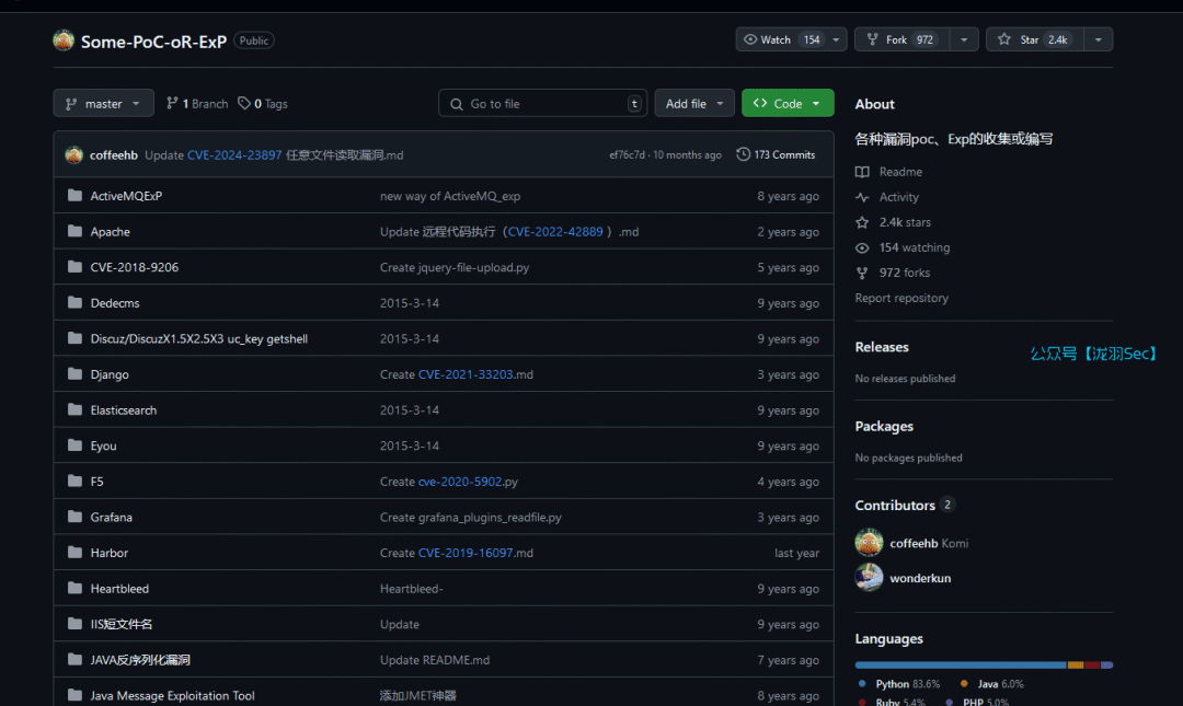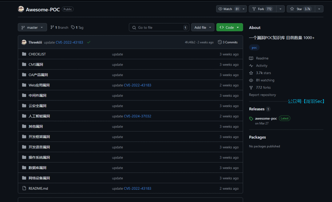 5、Awesome-POC:一个漏洞POC知识库 目前数量 1000+