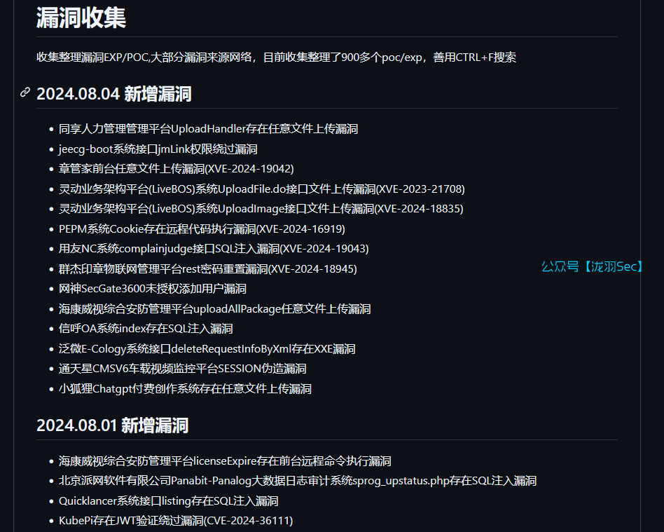 6、HVV2024-POC:收集整理漏洞EXP/POC,大部分漏洞来源网络,目前收集整理了900多个poc/exp