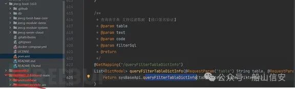 通过审计jeecgboot 3.6.0源代码,发现jeecgboot表接口存在SQL注入漏洞,通过构造表名和字段名,直接获取到数据库中的数据。