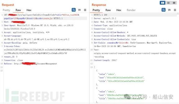 整改建议:前端用户可控参数不能直接带入到用户可控参数table中进行查询,或禁用前端用户对/sys/api/queryFilterTableDictInfo接口访问。