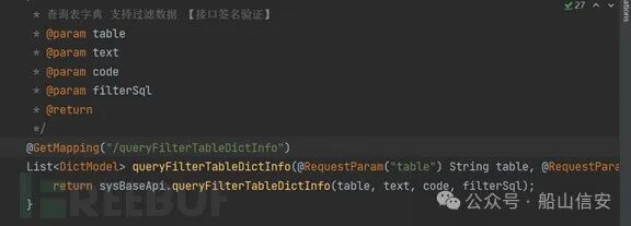接口/sys/api/queryFilterTableDictInfo存在SQL注入漏洞