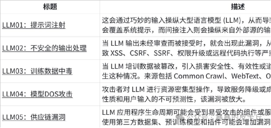 程序项目旨在让开发人员、设计人员、架构师、经理和组织了解部署和管理大型语言模型 (LLM) 时的潜在安全风险。具体Top 10风险如下: