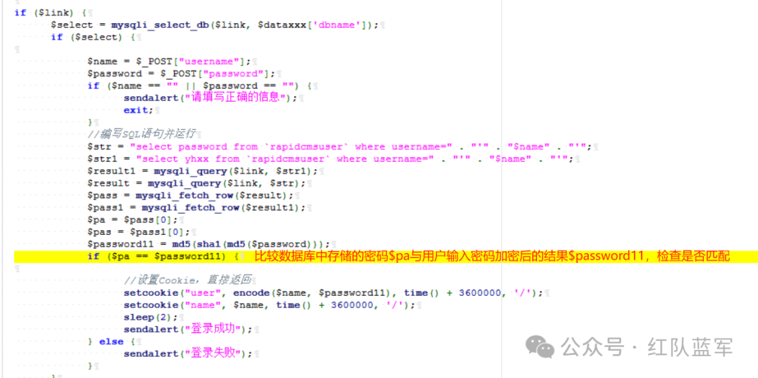 password11匹配成功,登录成功,这里就可以利用SQL注入将password经过md5、sha1、md5加密后的值。进行绕过。