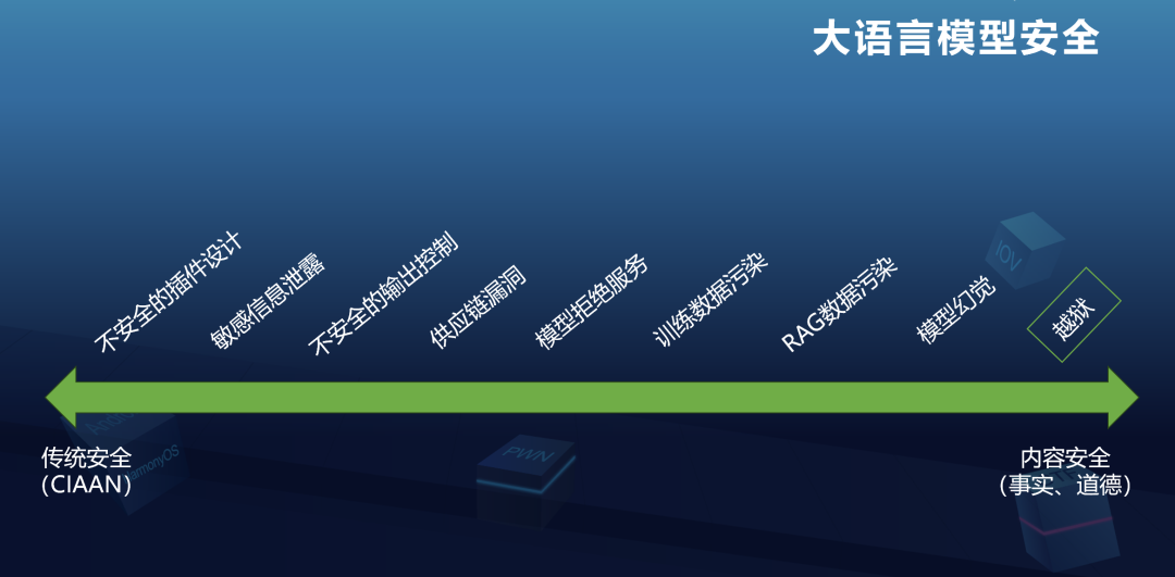从外部看目前在外部环境中攻击方法是不断在变化的,因为大家看论文也可以看到,从去年到今年,发了很多的越狱相关的论文。另外就是内容安全问题了,每天发生的热点事件都有可能被有心人变成内容安全的问题。