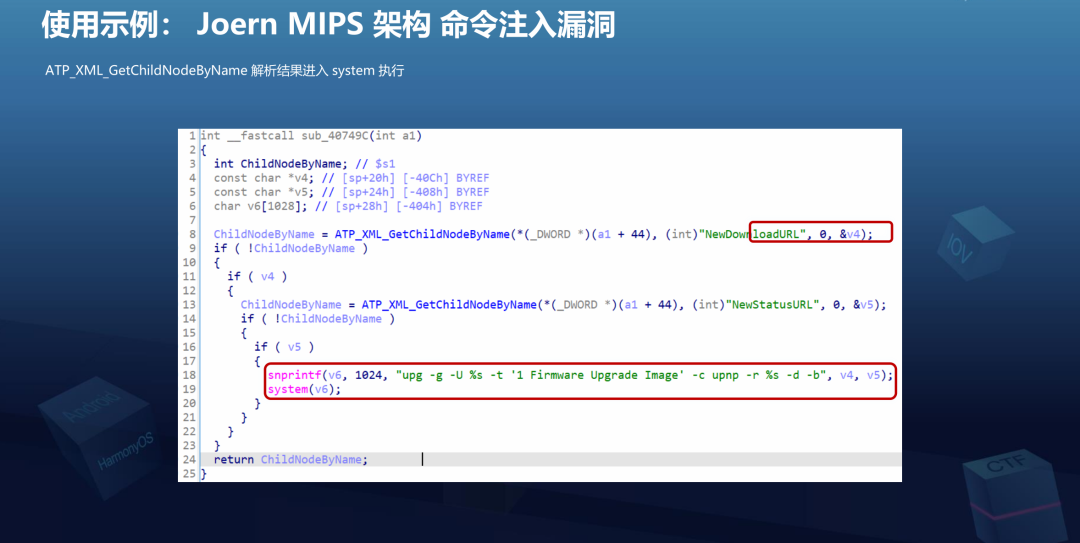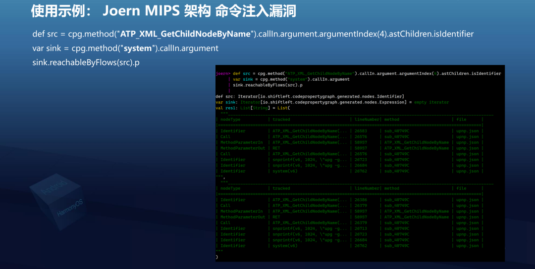 下面是一个使用 Joern 分析 MIPS 架构命令注入漏洞的案例: