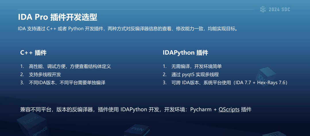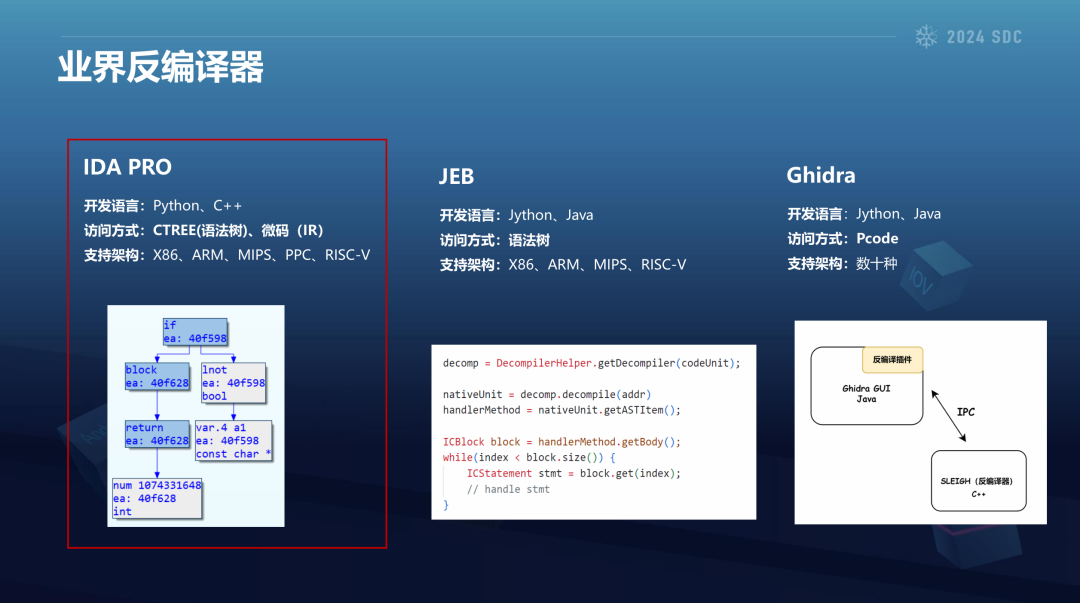 对目前业界反编译工具进行分析后,考虑到反编译效果、开发难度决定基于 IDA 开发。
