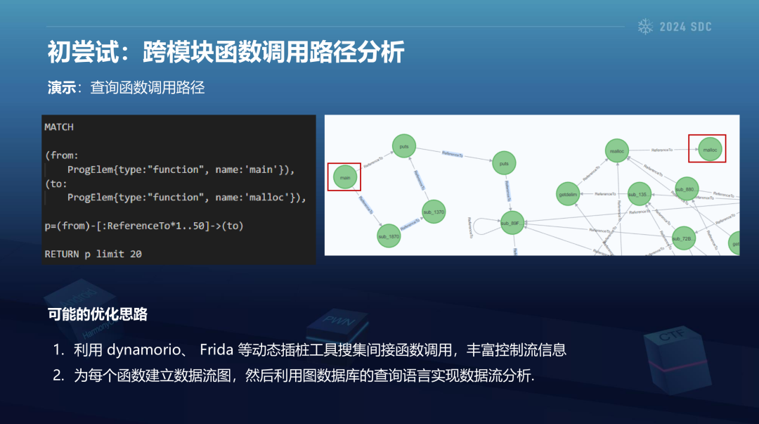 我当时的第一个思路是利用图数据库和 IDA 的 CFG 生成跨模块的调用路径分析、字符串引用分析等。