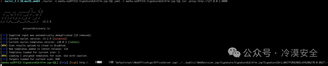 万户 ezOFFICE SignatureEditFrm.jsp接口存在SQL注入漏洞,未授权的攻击者可利用此漏洞获取数据库权限,深入利用可获取服务器权限。