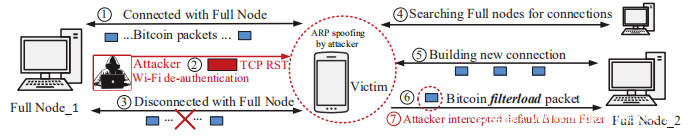攻击者的假设:攻击者可以拦截和修改受害者与受害者连接的比特币FNC之间传输的比特币消息。