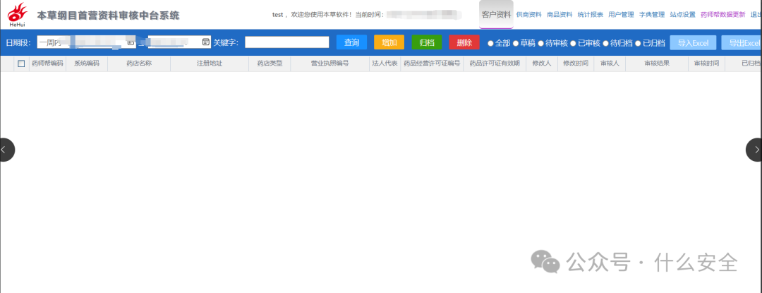 广州和晖科技有限公司本草纲目首营资料审核中台系统存在逻辑缺陷漏洞,攻击者可利用该漏洞进入系统获取敏感信息。