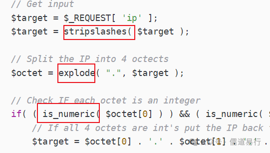 可以看到,Impossible级别的代码加入了Anti-CSRF token,同时对参数ip进行了严格的限制,只有诸如“数字.数字.数字.数字”的输入才会被接收执行,因此不存在命令注入漏洞。