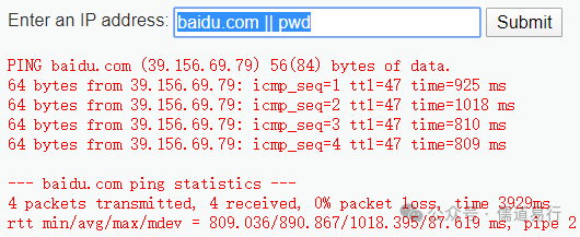 服务器端对ip参数做了一定过滤,即把”&&” 、”;”删除,本质上采用的是黑名单机制,因此依旧存在安全问题。