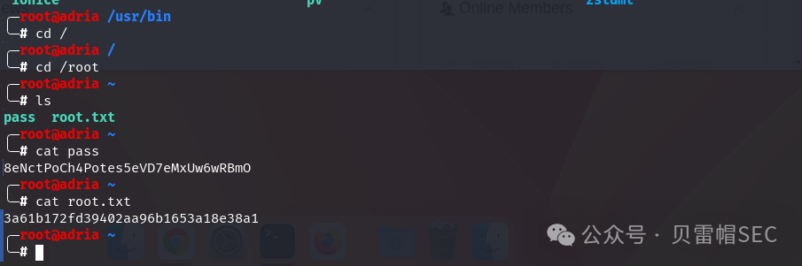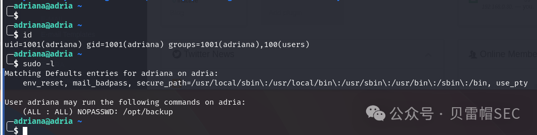 这里我们输入help 查询帮助,会有一个交互界面,我们输入!bash 直接提权到了adriana 用户