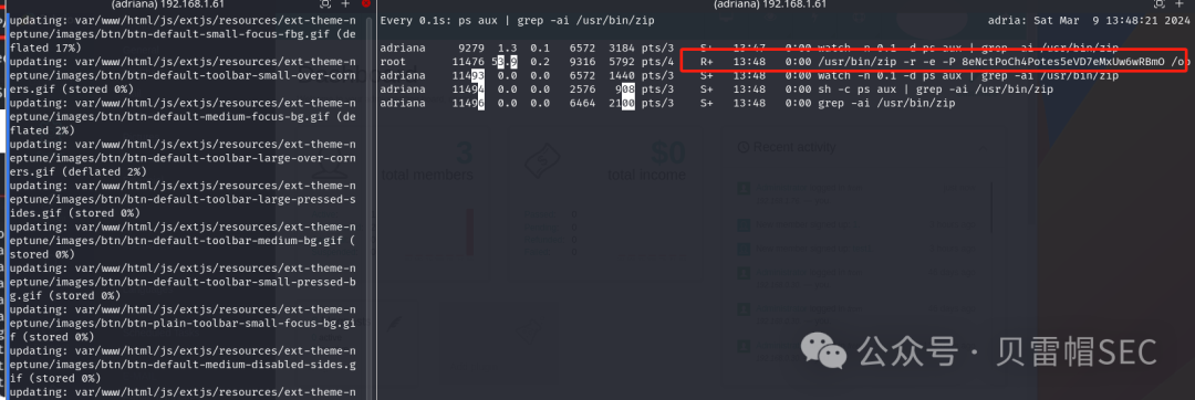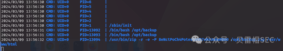 但是这里我们是看不到密码的,此时我们可以下载pspy64 进行进程