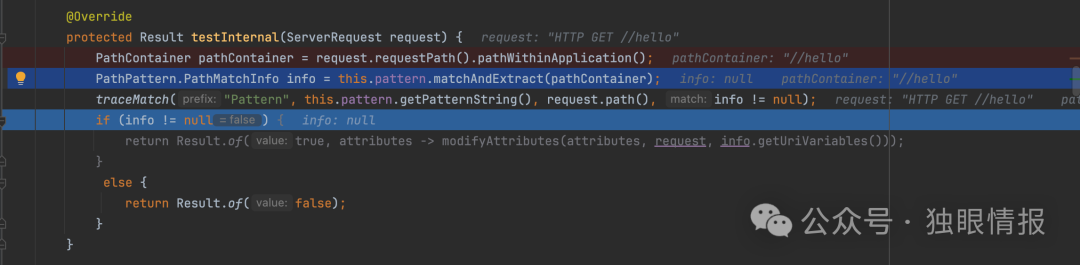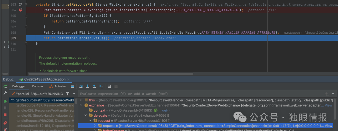 举例来说,使用路径..//index.html时,请求的路径会通过exchange.getRequiredAttribute(HandlerMapping.PATH_WITHIN_HANDLER_MAPPING_ATTRIBUTE)解析,结果为index.html。攻击者可以利用这个机制进行攻击。