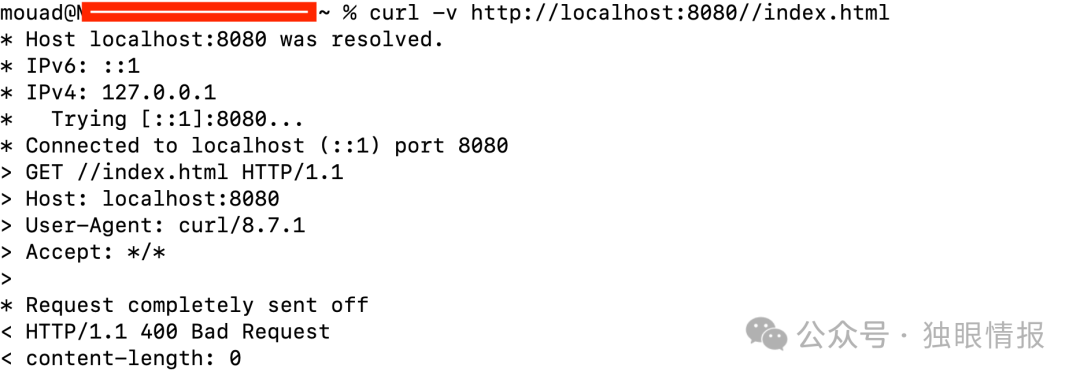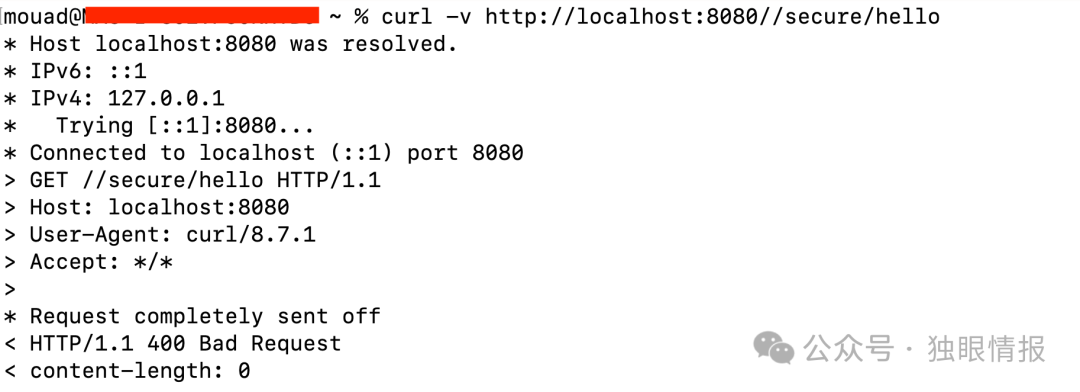 如果我们用修复版本重试之前的攻击请求,会收到”Bad Request”错误:
