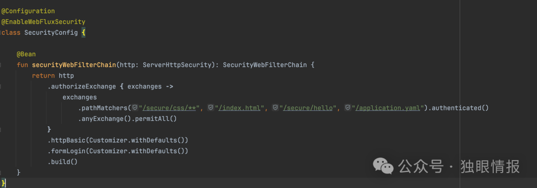 让我们配置以下设置来保护特定路径,包括/secure/hello、/index.html和/application.yaml: