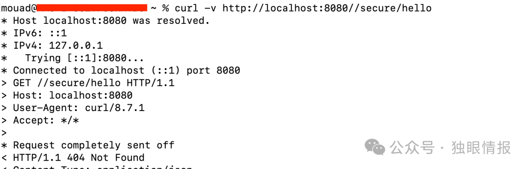 相比之下,使用这种方法访问动态资源(如/secure/hello)会得到”NOT FOUND”错误,这正如前面所解释的。