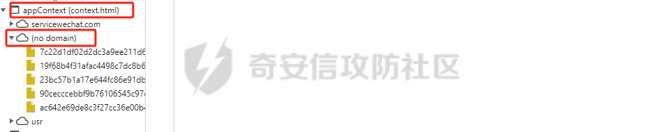 打开devtools 一般在appcontext下的no domain中存储的是小程序的js代码