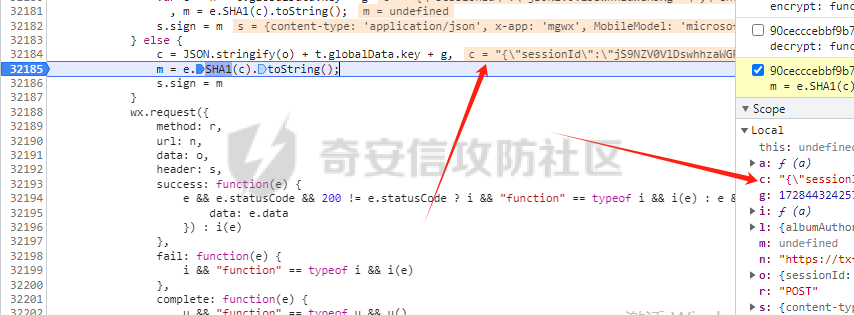 这样再往上去找函数调用的话不如动态调试来的方便,于是在32185行打上断点