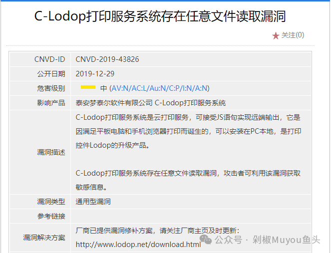 泰安梦泰尔软件有限公司C-Lodop打印服务系统存在文件读取漏洞,攻击者可利用该漏洞获取敏感信息。