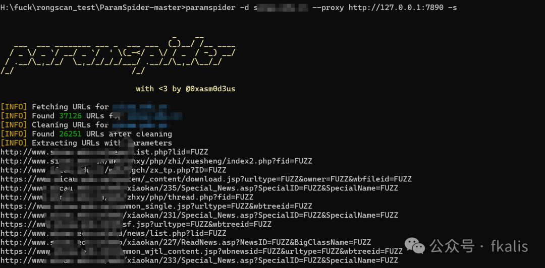 paramspider -d xxx.edu.cn --proxy http://127.0.0.1:7890 -s