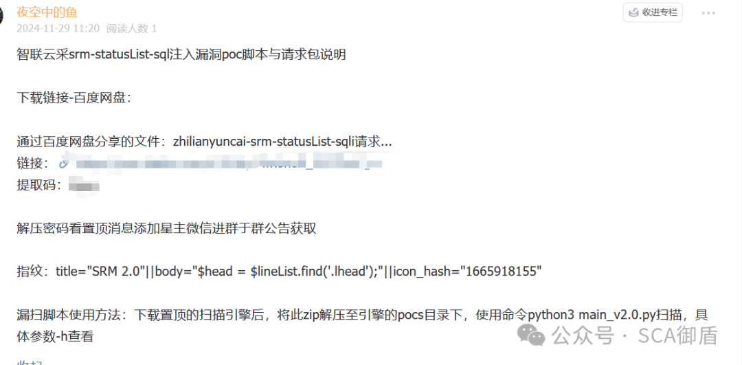 SCA御盾实验室的技术文章仅供参考,此文所提供的信息只为网络安全人员对自己所负责的网站、服务器等(包括但不限于)进行检测或维护参考,未经授权请勿利用文章中的技术资料对任何计算机系统进行入侵操作。利用此文所提供的信息而造成的直接或间接后果和损失,均由使用者本人负责。本文所提供的工具仅用于学习,禁止用于其他!!!