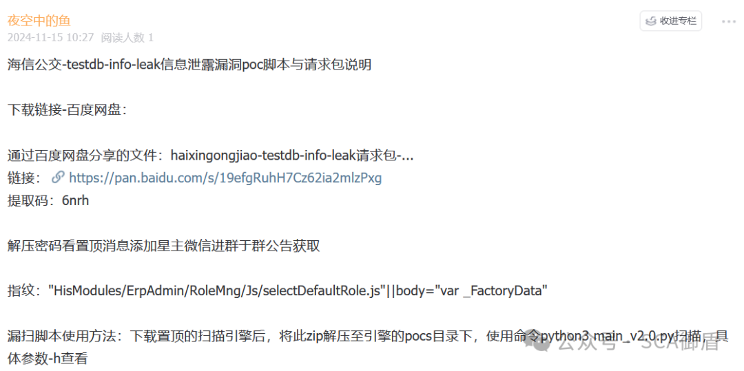 SCA御盾实验室的技术文章仅供参考,此文所提供的信息只为网络安全人员对自己所负责的网站、服务器等(包括但不限于)进行检测或维护参考,未经授权请勿利用文章中的技术资料对任何计算机系统进行入侵操作。利用此文所提供的信息而造成的直接或间接后果和损失,均由使用者本人负责。本文所提供的工具仅用于学习,禁止用于其他!!!