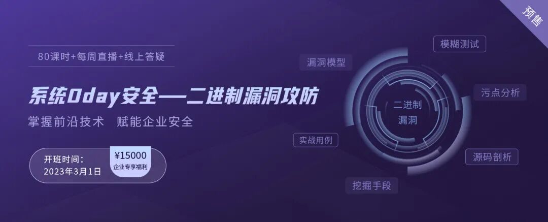 新课预售!系统0day安全- 二进制漏洞攻防,赋能企业安全
