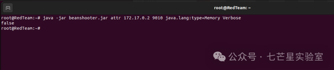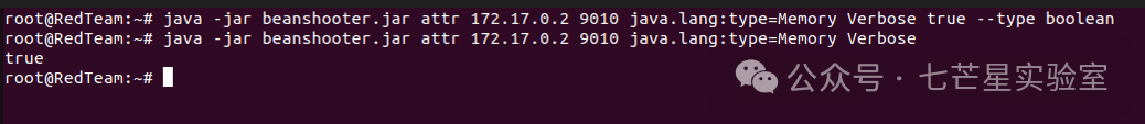 java -jar beanshooter.jar attr 172.17.0.2 9010 java.lang:type=Memory Verbose true --type boolean